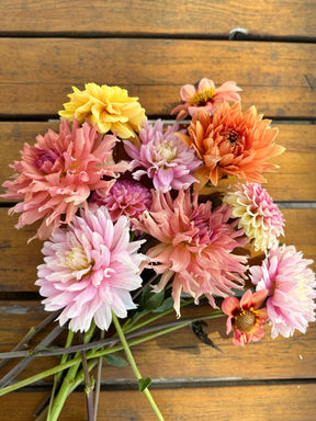 Welcome! We have expanded Grumpy Chicken Farm into the Cedar Street Bridge. We make our bouquets with seasonally grown flowers from the farm in Selle Valley and off season we try and order USA grown when possible.